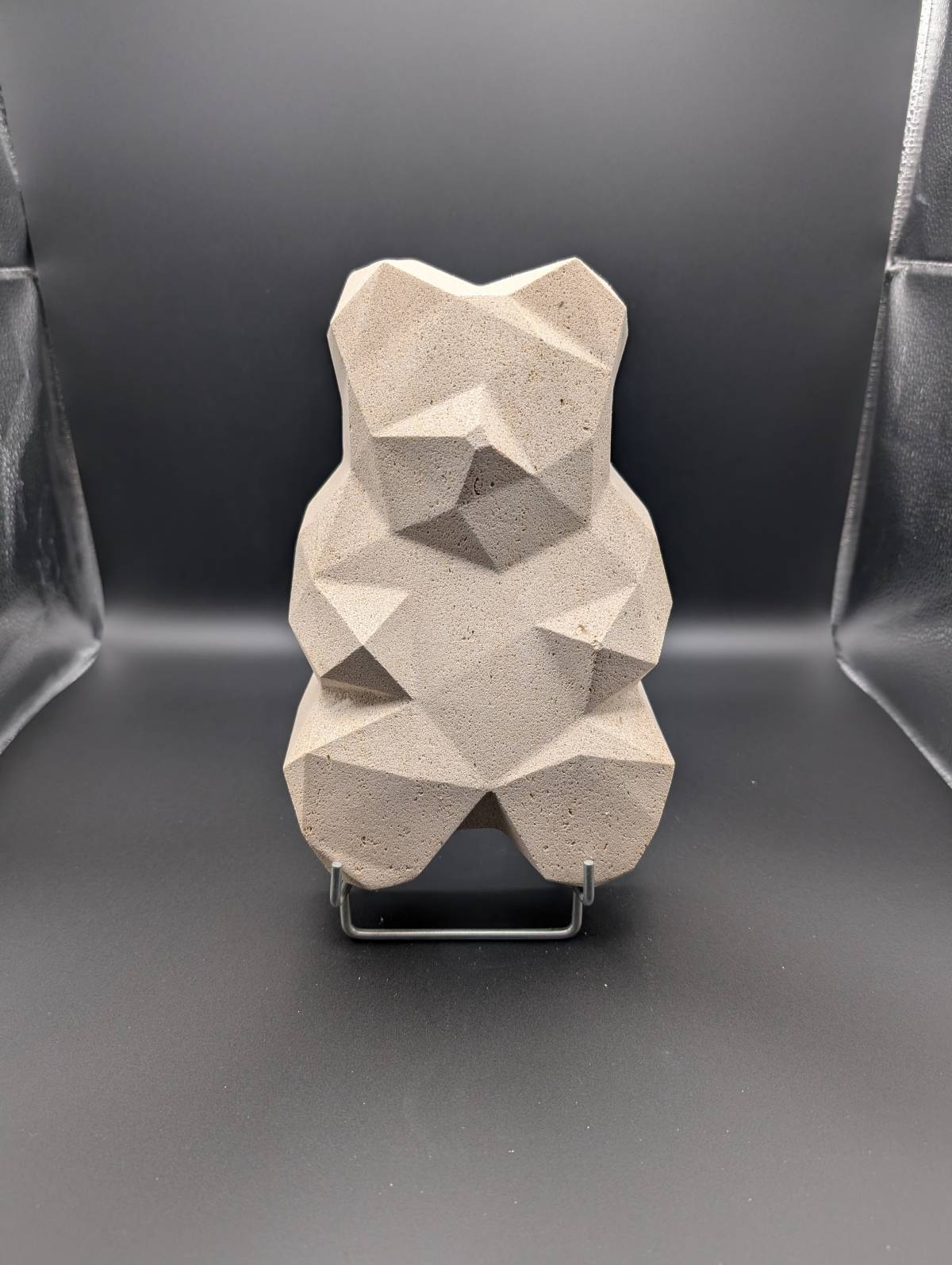 Nounours en pierre d’Euville (provenance Meuse), façonné et poncé dans notre atelier.